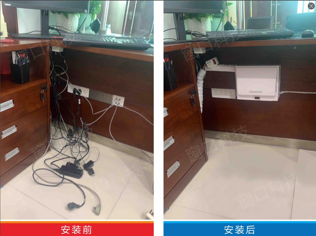 解决方案:专业款电源集线器是桌下线路一站式解决方案!供电收纳二合一,彻底告别插座线缆外露;自带总控开关减少设备损耗,磁吸快拆上盖 + 按压式走线槽让运维检修更省心。这款产品已服务千家金融、政企单位,轻松解决线路杂乱、安全、合规三大核心问题,重塑整洁办公环境。